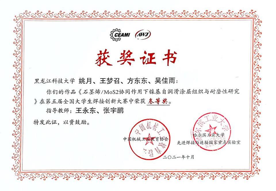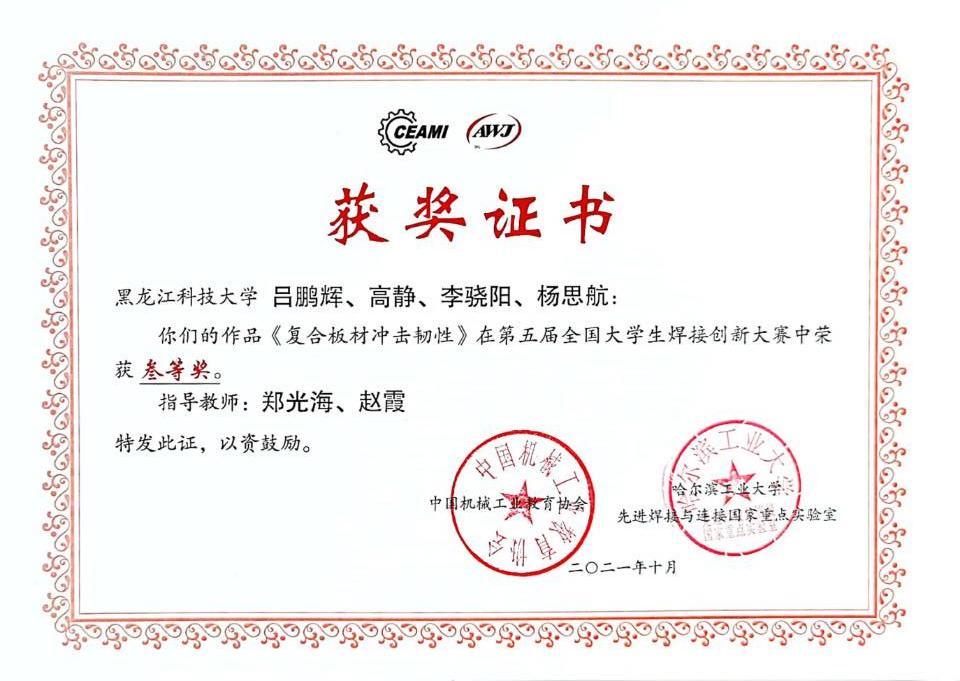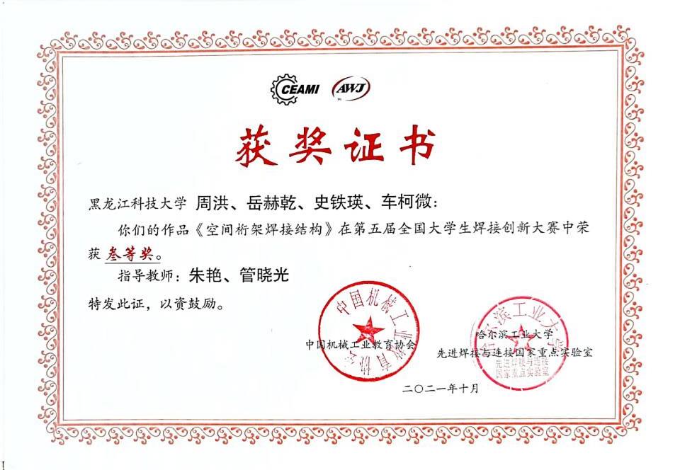 2021年10月20~23日,第五届全国老员工焊接创新大赛在哈尔滨举行,本届大赛由中国机械工业教育协会和哈尔滨工业大学先进焊接与连接国家重点实验室主办。来自清华大学、哈尔滨工业大学、天津大学、unibet中文等49所高校的148件作品入围决赛。在公司教务处、unibet的高度重视和大力支持下,公司代表队获得二等奖1项,三等奖3项的好成绩。