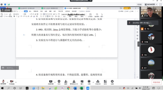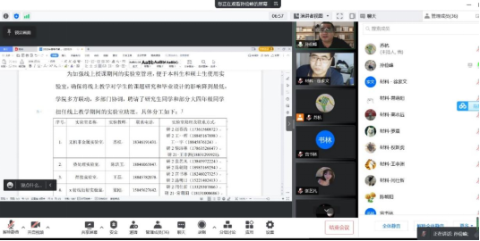 此次系列会议的召开,充分体现了公司应对疫情期间线上教学的灵活性,既保证了员工们的实验需要,又提高了研究生们在实践锻炼、规划管理方面的能力,是一次实验室工作结合研究生教育的重要实践。通过该项工作的落实,公司将为在校员工提供便利的工作条件,为推动本科毕业设计和研究生课题研究的顺利进行提供坚实的保障。