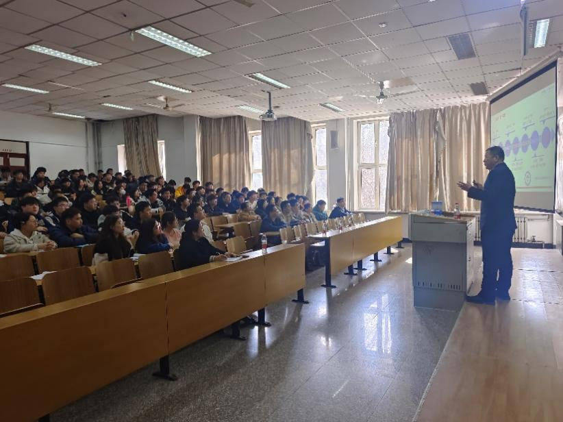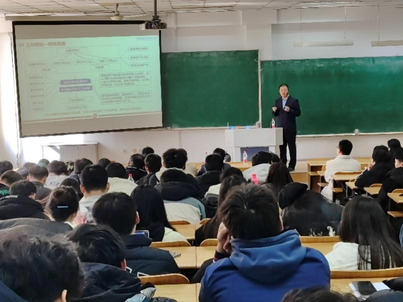 刘洪汇研究员以航空、航天、船舶、汽车等领域装备轻量化和集成化结构的战略需求为研究背景展开学术报告,指出我国工业化生产中制约航天发动机发展的核心问题,强调了研究特种液态成型工艺制备新型镁合金材料的必要性和重要性。接着,他就需要解决的关键科学问题与主要研究内容等进行了详细地讲解。以工程化特性为牵引,研发制备盐湖及高端镁合金材料及应用关键核心技术,推动产业发展,建成高端中试生产线,形成镁合金高端、高价值利用的产业生态。在报告过程中,他与师生分享了自己的科研历程和研究心得,指出科学研究要服务国家重大战略需求,助力盐湖镁资源高值利用,助推世界级盐湖产业基地建设。在互动环节,刘洪汇研究员对师生提出的相关学术问题进行了交流,并解答了师生在科学研究中遇到的困惑和难题。
