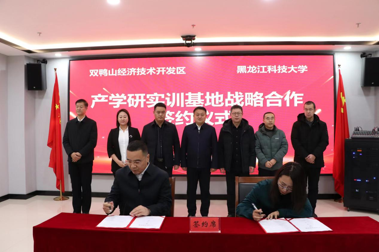 2024年12月13日下午,unibet与双鸭山经济技术开发区建立专家工作站、产学研实训基地合作签约仪式在双鸭山科创中心四楼会议室隆重举行。同时,与黑龙江省墨砾新型材料有限责任公司签订了校企合作协议。