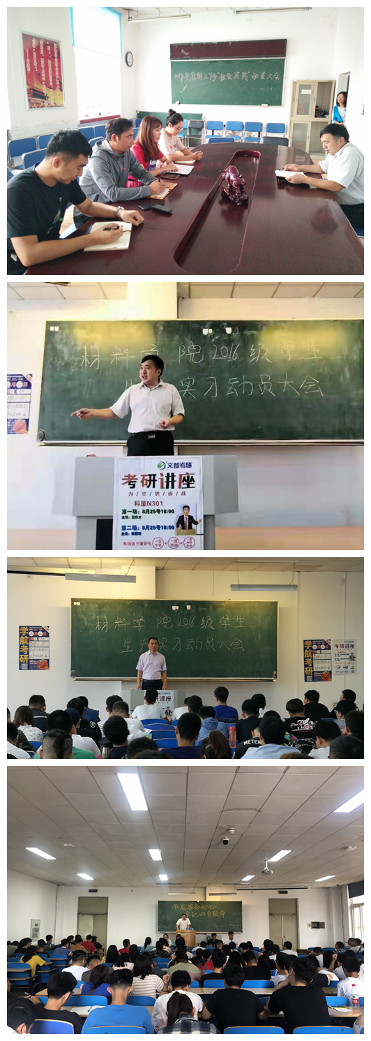 26日上午,公司在教学主楼EN0203召开2016级员工就业与实习动员大会。会上,王振廷经理针对大四学年的整体教学进程安排予以说明,结合实习重点强调了实习安全,遵守实习纪律,注意个人言行,树立材料学子良好形象等方面问题;马书记结合即将到来的就业季,建议毕业生抢前抓早在外实习仍然要做好应聘准备,关注就业信息,抓住九、十月份就业黄金期。